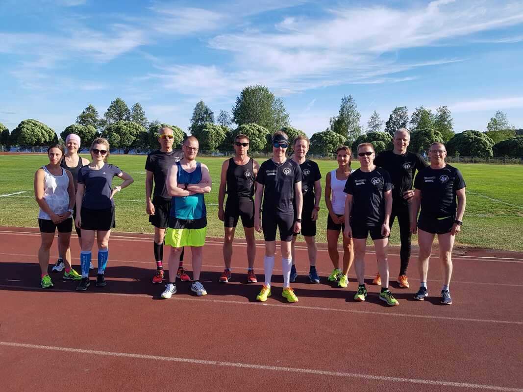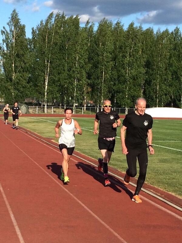 Aurinkoa ja tuulta tuiskutti Palokan kentällä kun Kuohun juoksijat kokoontuivat suurella joukolla temppuilemaan vetoharjoituksen merkeissä. Hieman nurinaa ja jupinaa kuului kun Silja käskytti muutaman koordinaatioharjoituksen alkulämmittelyjen jälkeen. Tarttis varmaan enemmänkin harjoittaa jotta alkaisi tuntumaan omalta jutulta. Itse asiaan päästyämme homma alkoi sujumaan, Matti kärjessä ja muut sitten hieman perässä. Tiukkaa vääntöä oli laajalta rintamalta, mitä nyt Tero hieman aiheutti hämminkiä ja sekaannusta. Ensikerralla vielä enemmän porukkaa mukaan!! |