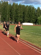 | Aurinkoa ja tuulta tuiskutti Palokan kentällä kun Kuohun juoksijat kokoontuivat suurella joukolla temppuilemaan vetoharjoituksen merkeissä. Hieman nurinaa ja jupinaa kuului kun Silja käskytti muutaman koordinaatioharjoituksen alkulämmittelyjen jälkeen. Tarttis varmaan enemmänkin harjoittaa jotta alkaisi tuntumaan omalta jutulta. Itse asiaan päästyämme homma alkoi sujumaan, Matti kärjessä ja muut sitten hieman perässä. Tiukkaa vääntöä oli laajalta rintamalta, mitä nyt Tero hieman aiheutti hämminkiä ja sekaannusta. Ensikerralla vielä enemmän porukkaa mukaan!! |
