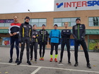 Kiva keli jatkui myös sunnuntaina kun kokoonnuimme yhteislenkille. Perinteinen aamukymppi pamautti taas kaksi ryhmää liikkeelle. Jyväsjärven maisemissa pyörittiin ja paljon tuttuja nähtiin. Matkan varrella myös Riitta vastaan porhalsi muttei kovassa vauhdissa saanut kenkiä kääntymään mukaan meidän ryhmään ; ). Toinen ryhmä meni vitosen, toinen kutosen vauhtia. Vauhti sovitaan aina osallistujien mukaan. Kuvan porukoiden lisäksi matkassa oli Ari ja salaperäinen kuvanottaja. |