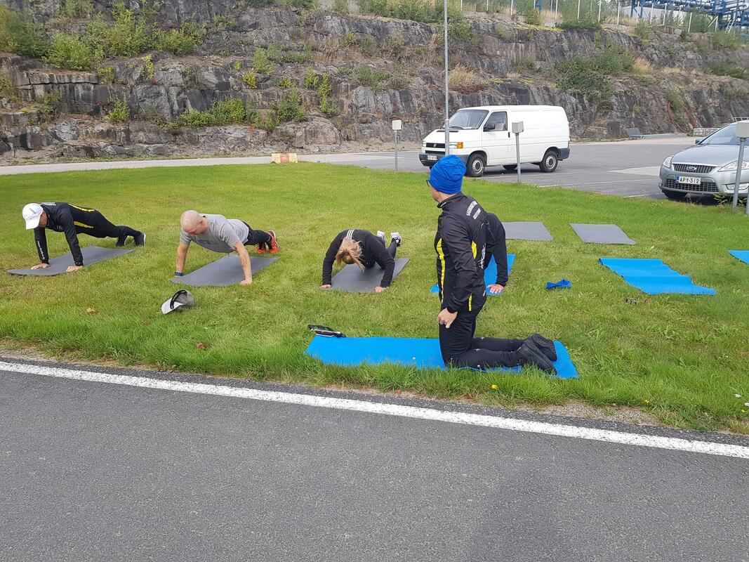 Kuohun kestävyysjuoksujaosto oli tänään mukana järjestämässä Valio Jyväskylän hyvinvointipäivää yhdessä Mehiläisen kanssa. Meidän osuuteen kuului Mind & Body -teemaisen päivän "body" -osuus johon olimme koostaneet hyvän setin teoriaa monipuolisesta kunnon kohottamisesta sekä käytännön harjoituksia sisältäen liikkuvuutta, koordinaatiota ja lihasvoimaa. Mukava päivä päättyi leikkimieliseen kisailuun jossa tiimi Silja, Juhis ja allekirjoittanut otti selkeän voit... eikun taisi sittenkin tulla pataan. Häviöstä huolimatta oli hienoa olla mukana tärkeää asiaa, työhyvinvointia, edistämässä. |