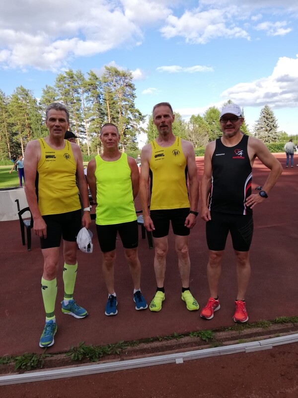 Ami ja Ahosen Matti jatkoivat ratajuoksusarjaa tällä kertaa kesäisessä Muuramen illassa, matkana tiukka 800m. Ikinuorikaksikko herättää ihastusta keltaisen kisapaidan lisäksi komealla ja kantavalla askelluksella. Hienoa ukot ! Toivottavasti kuohulaisväriä tulee lisääkin tuleviin ratakarkeloihin. Syyskuussahan järjestetään SAULin SM-yleisurheilukilpailut Harjun stadionilla. Tulokset kuvan muodossa vieressä. |