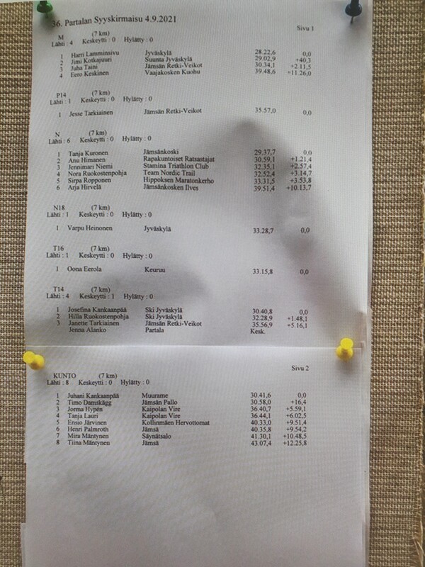 Syyskuu alkoi kuohulaisittain pimenevästä Harjun illasta,missä Puttosen Seppo kasasi triplan kasaan ja osallistui viimeiseenkin Harju-cuppiin ja kiskaisi 800 m aikaan 2.31,56. Hyvä Seppo. Perjantaina kirmattiin Tassuralli niminen hölkkäkisa Seinäjoella. Oli muuten jo kerta numero 50. Hienosti järjestetty pieni tapahtuma, kannattaa käydä. Osallistujana kuohulaisista oli Jukka, sijoittuen M50-sarjassa toiseksi. Tulokset. Lauantaina Eero ja Anu kävivät juoksemassa Jämsän Partalassa paikallisen kirmaisun. Anu porhalsi hienosti toiseksi ja Eero neljänneksi. Tulokset kuvan muodossa vieressä. Sunnuntaina oli kovasti sykettä kun järjestimme oman kisan , vuorossa oli jännittävä ratakilpailu 5 000m. Kyseessä on ikähyvityksen huomioiva kilpailu, missä lopputuloksia ei vielä maalintullessa tiedä. Kisan huipensi naisten sarjan voittoon juossut Riitta Rasimus. Naisten sarjan voiton lisäksi Riitta juoksi uuden upean Suomen ennätyksen 80- vuotiaiden ikäluokassa. Kuohulaisista palkinnoille juoksivat Anna ( 3.) ja Ami ( 3.) Muita kuohulaisia mukana myös Matti A, Jani ja Katja. Sekä iso määrä toimitsijoita. Kiitos kaikille. Tulokset. Sunnuntaina myös Kolkkavan Timppa oli juoksupäällä, arvatkaas matka---oikein, puolikas. Tampereelta tuomisina oman sarjan kolmostila. Tulokset. |