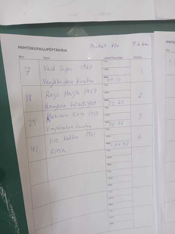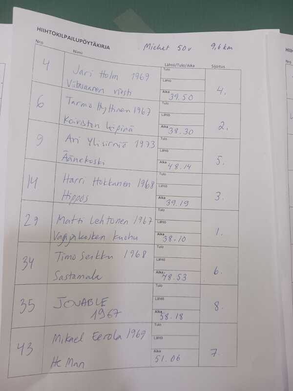 Sunnuntaina oli saapunut kuohulaisnelikko Viitasaaren Löytänässä järjestettävään Jaakon hölkkään hyvävoimaisena. 9.6 km pituisen reitin varrella kävi selväksi että tänään keltamustapaita keikkuu monen sarjan palkintosijoilla. Ykkössijat nappasivat Lehtosen Matti M50-, Veidin Sepi M60- sekä Pihlaisen Auli N60 - sarjassa. Tähän kun lisätään Keskisen Eeron kolmossija M60- sarjassa niin eipä siinä muille paljon jäänyt kuin terveisiä. Toimitus onnittelee. Tulokset ohessa toistaiseksi vielä kuvan muodossa. |