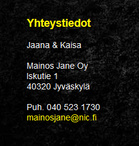 Toimittakaa ostamanne juoksuasut MainosJanelle tämän viikon loppuun mennessä niin saadaan painot tehtyä kerralla. MainosJanen yhteystiedot ohessa. Seura maksaa painatukset. Stadiumin Juoksupuku tässä Lisäksi voi ostaa esim. mustia t-paitoja, mustan hupparin tms. |