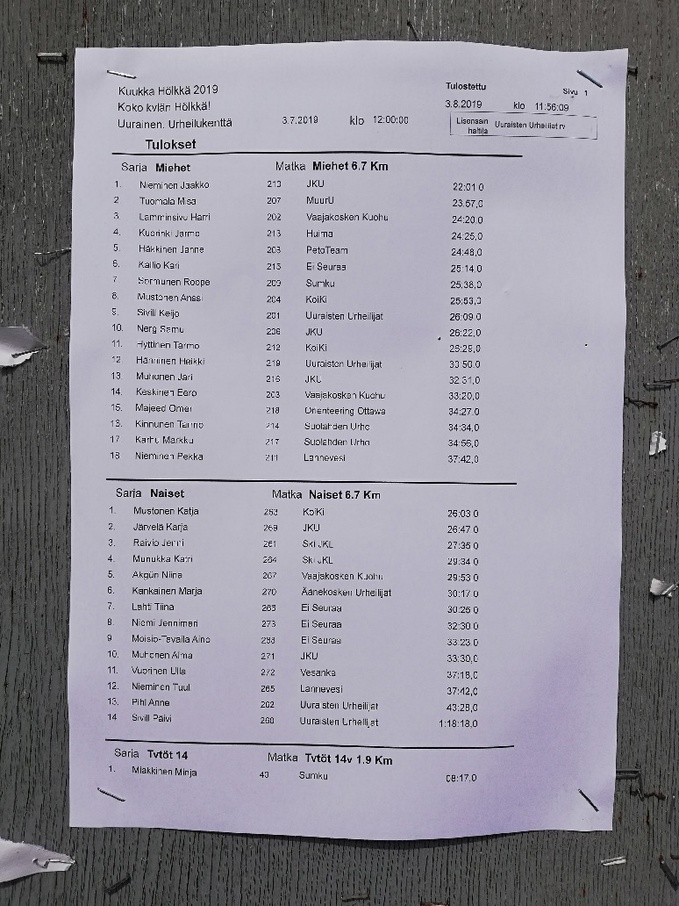 - Pyhän Olavin maraton, puolikas ja vartti 21.7